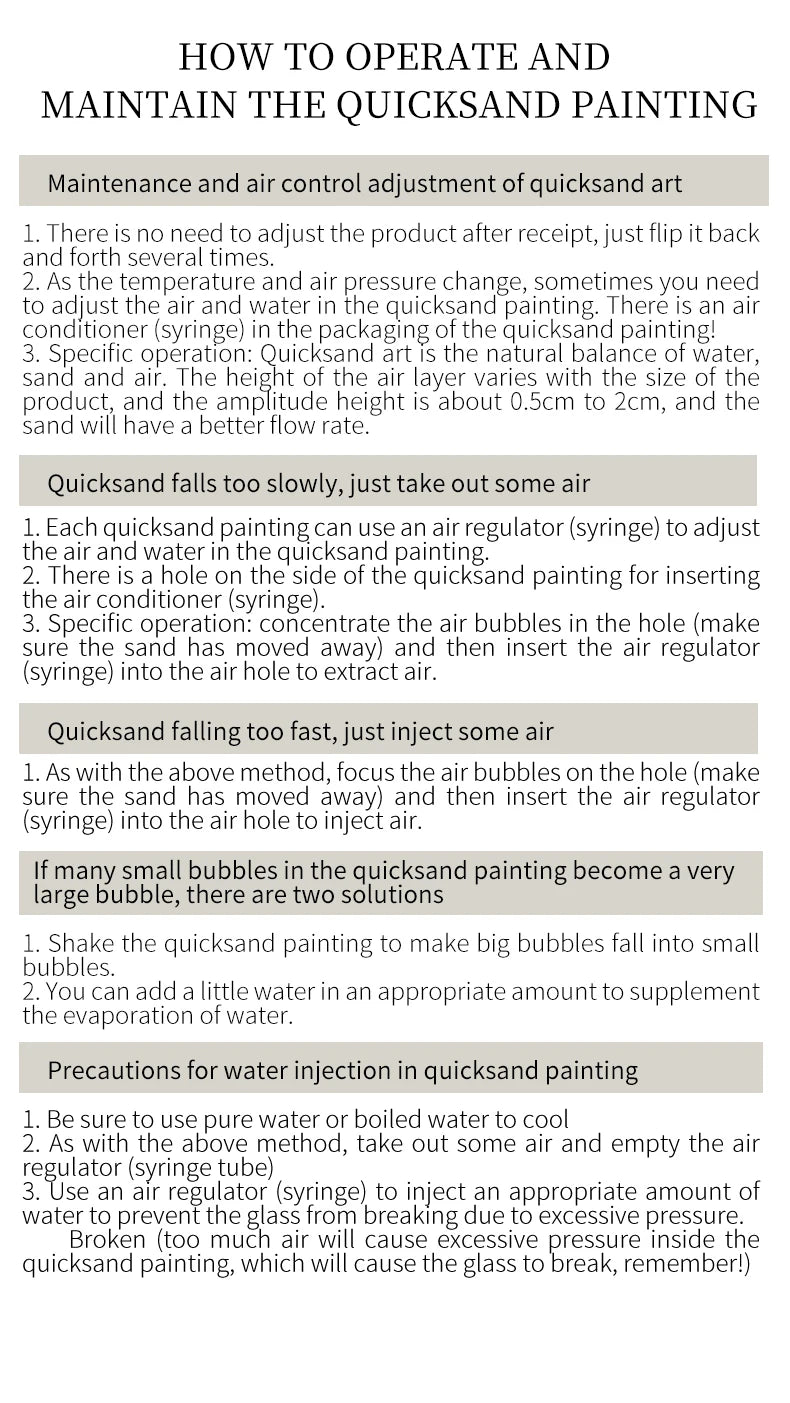 *If there are few air bubbles, please let the quicksand stand still to the bottom, the air bubbles are on the top, and then shake, it will generate more small air bubbles, and it will flow more slowly.