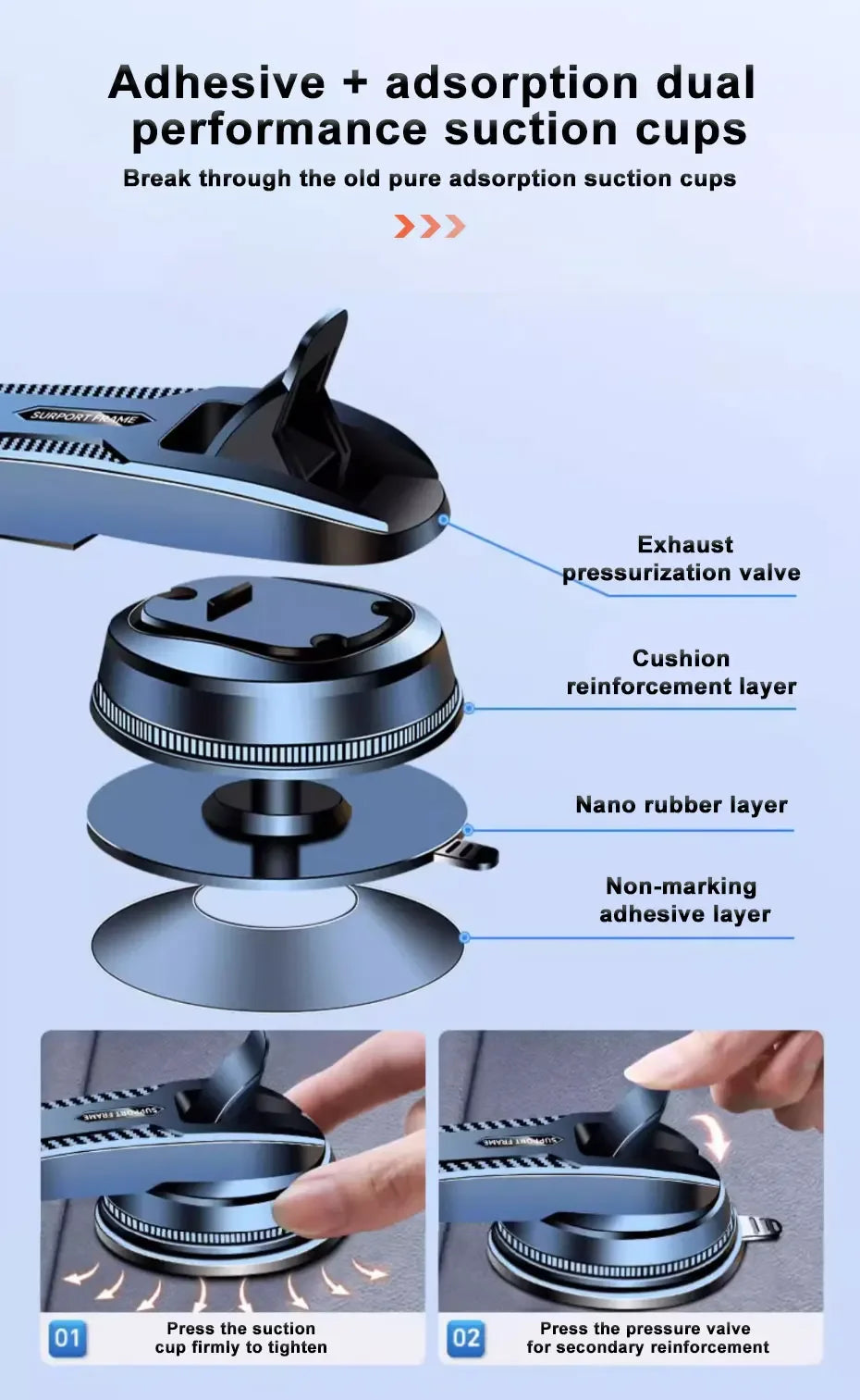 1. Lightweight design, suitable for 3-7 inch mobile phones, can be installed on the dashboard (tips: this mobile phone holder can be used at home)