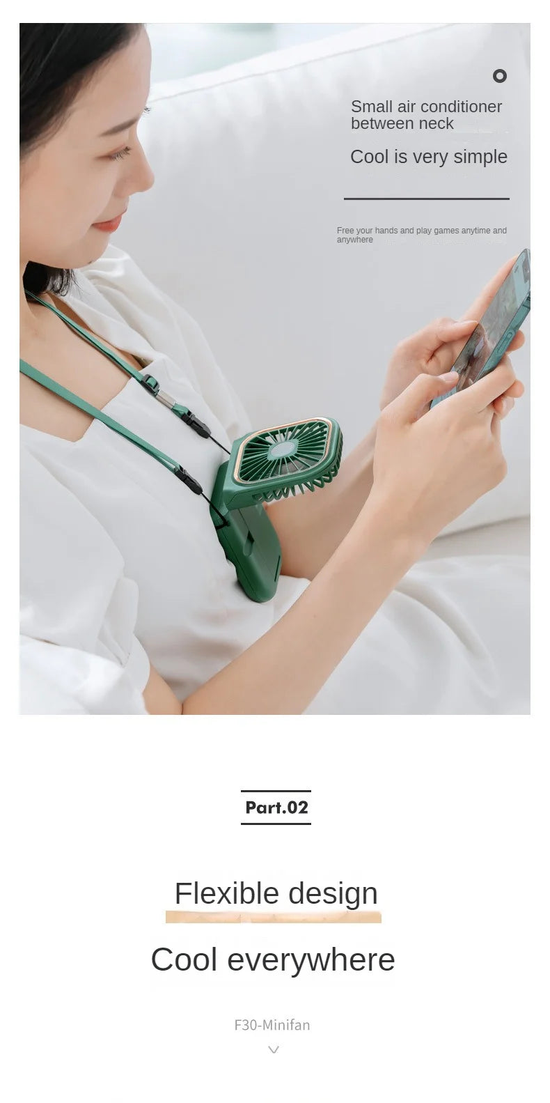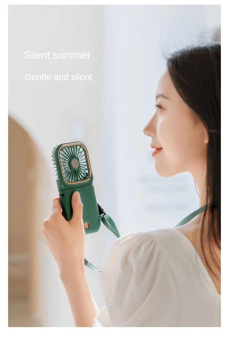USB halterneck small fan outdoor portablehandheld small electric fan desktop handheld fan power bank ultra-quiet Slim folding mini fan F30